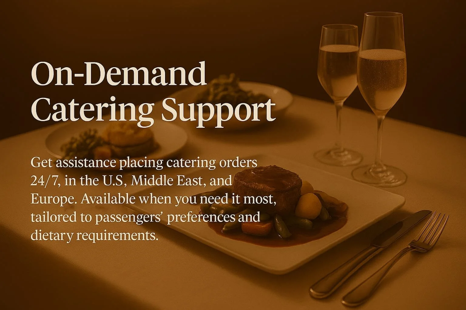 Worldwide access to trained, high-level cabin talent — plus catering oversight that eliminates waste, delays, and inconsistencies